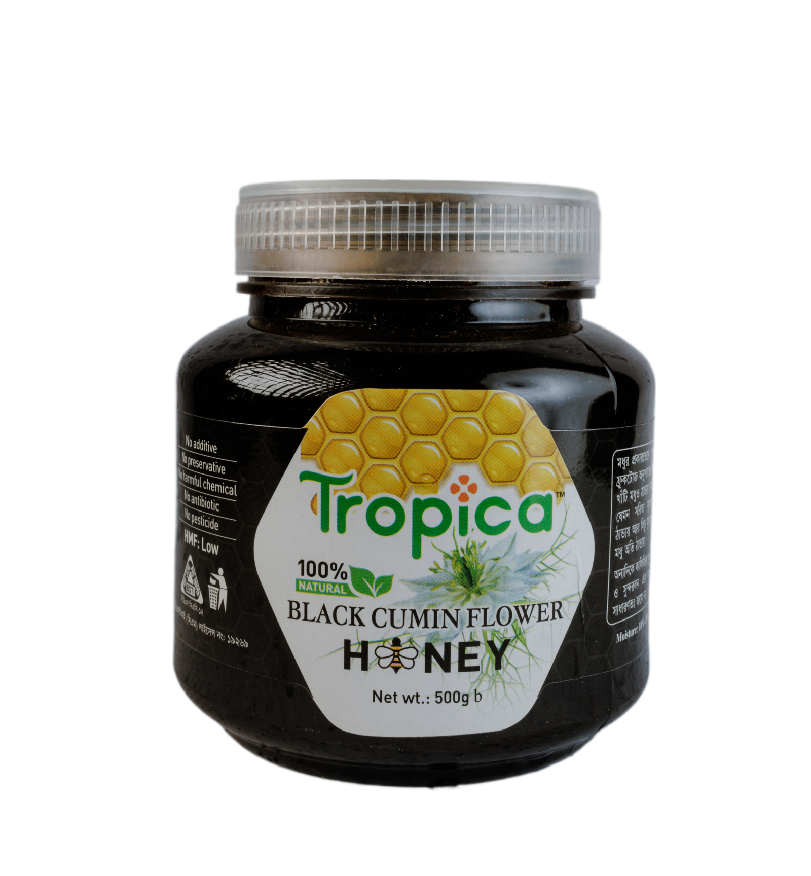 Tropica Black Cumin Honey Sourced from the nectar of black cumin (Nigella sativa) flowers, it has a distinct, slightly spicy flavor and deep amber color. Known for its traditional health benefits, it helps boost immunity, digestion, and overall vitality.